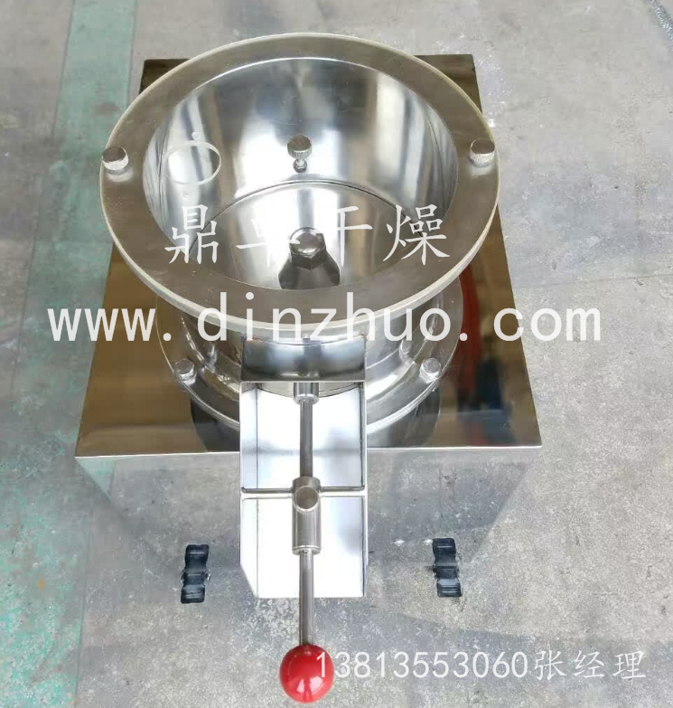 在旋轉(zhuǎn)盤(pán)的上部安裝有可視觀察窗,物料在密閉容器內(nèi)操作,無(wú)粉塵飛揚(yáng),操作安全。出料可采用手動(dòng)或氣動(dòng)出料,方便,快捷