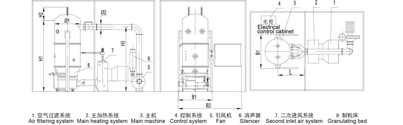★The structure of spraying drying chamber, filtering chamber, fluid-bed and secondary air supply system has been improved greatly. It can appear the features of spraying drying deeply.
