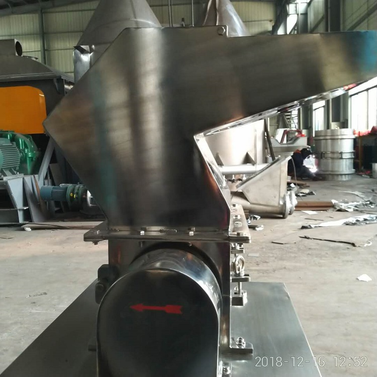 物料由進料斗送進粉碎室,經(jīng)刀刃和刀座的沖擊,旋轉刀和固定刀同時剪切粉碎,由于受到旋轉離心力的作用,物料自動從出口處流出。