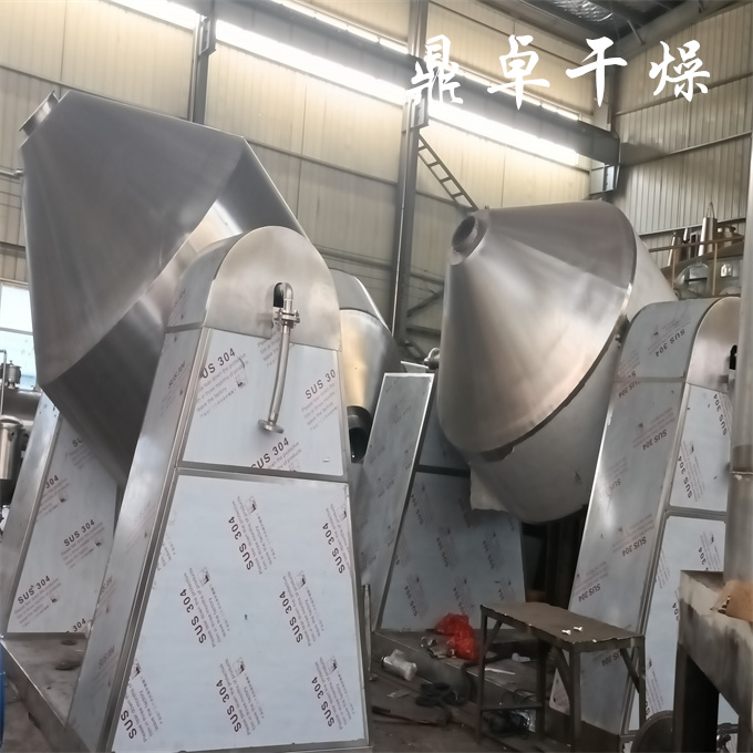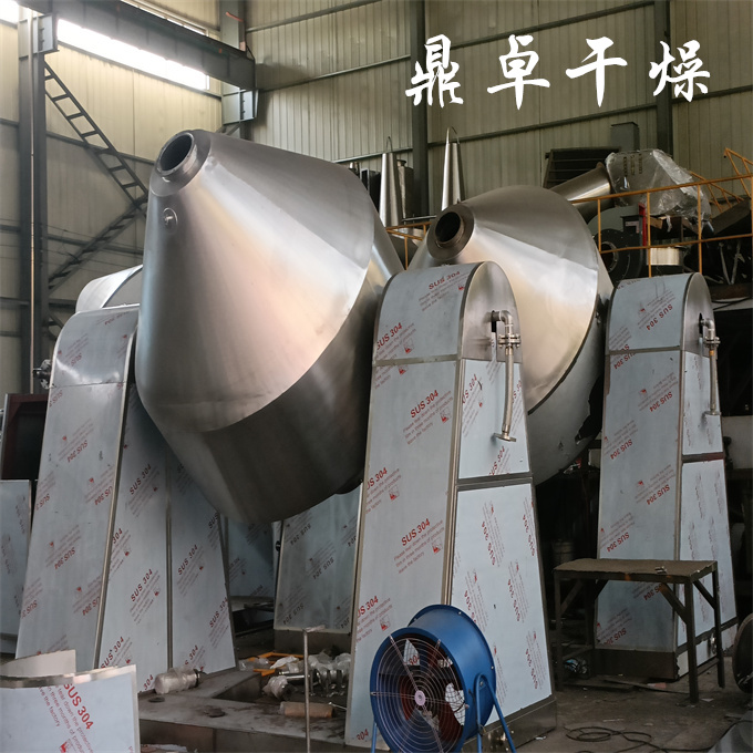 1、雙錐干燥機(jī)是集混合干燥于一體的新型干燥機(jī)。將冷凝器,泵與干燥機(jī)配套,組成干燥裝置(如不需回收容劑,冷凝器可不用);